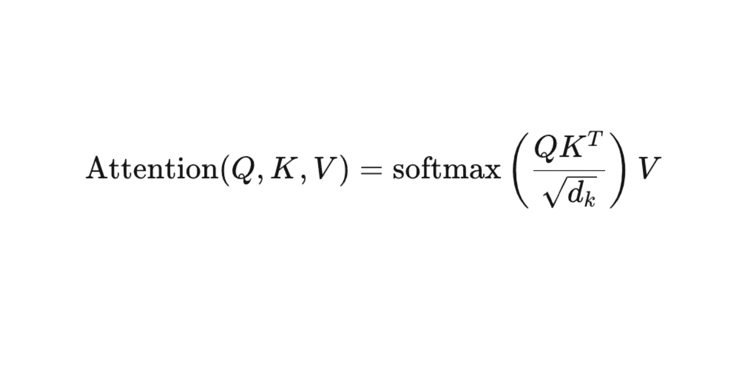 Fórmula del Mecanismo de Atención (Attention Mechanism). Este núcleo de la arquitectura Transformer (LLM) calcula la selección de contenido (tokens) al ponderar las matrices Query ($Q$), Key ($K$) y Value ($V$).